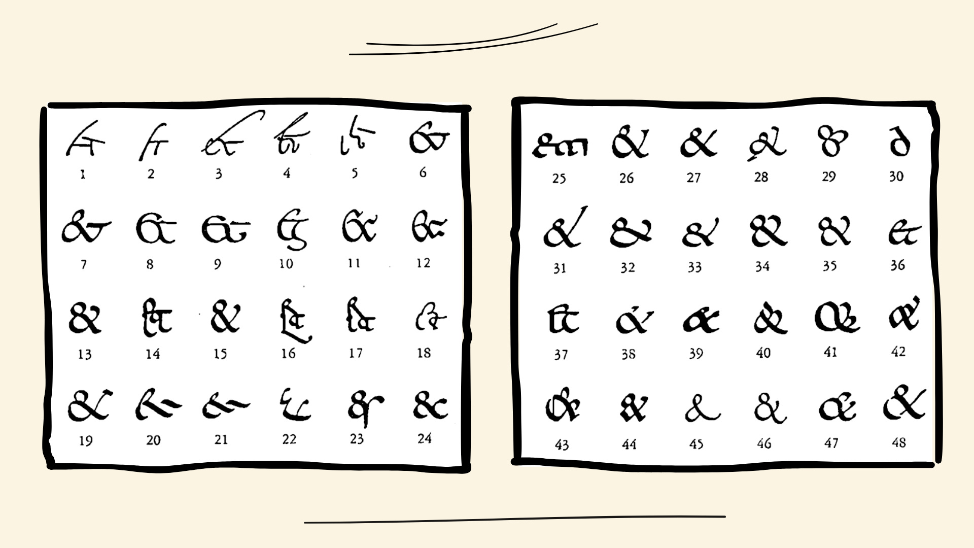 But the other interesting nugget besides the typography, is the etymology- the name ‘ampersand’ has a rather curious origin. It would appear that in the 19th century, the ampersand was taught in schools as as the twenty-seventh letter of the alphabet. It followed Z, and because ending the reciting of the alphabet with ‘and’ would be the equivalent of “you’ve left me hanging”, they had to amend it. So it was prefixed by the Latin ‘per se’, which means ‘by itself’.