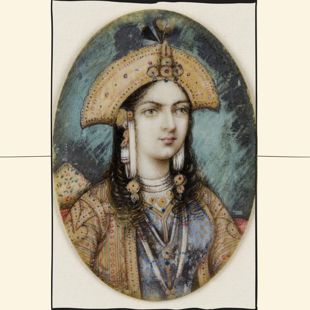 Born Arjumand Banu Begum in 1593, she is the fabled queen of Shah Jahan, the very one who inspired the Taj Mahal. Her father Asaf Khan, who happens to also be Nur Jahan’s brother, is the Grand Vizier to Emperor Jahangir; Mumtaz is Nur Jahan’s niece, and will go on to be her step-daughter in law.