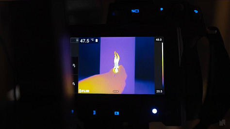 In every shot different objects needed to reach different but very exact target temperatures to stand out from one another. We used ovens, heat lamps, heat guns, and freezing sprays to keep each object’s temperature accurate to within 0.1°C!”