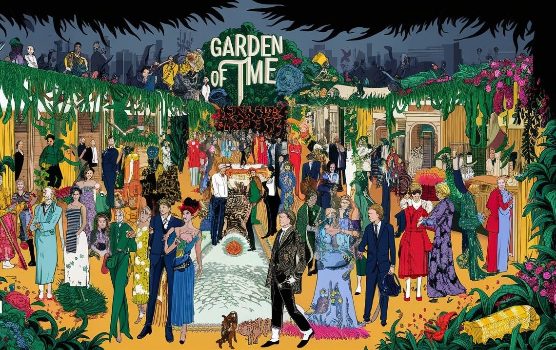 JG Ballard came up again because of the Met Gala. Now, I would hardly be the one to be excited or drawn to a large gathering of celebrities and slightly well-to-do folk wearing fancy clothes. But this year’s Met Gala theme was picked from a short story by Ballard, called The Garden Of Time. Creation and decay in living things is the grander metaphor, presumably; or “humanity's tendency towards cycles of creation and destruction”.